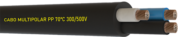 Condutor formado com fios de cobre eletrolítico, têmpera mole, encordoamento classe 5 (extra flexível) atendendo a norma ABNT NM 280.